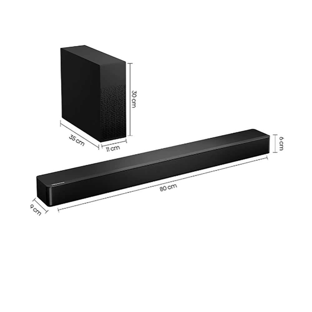 Su diseño compacto y minimalista se integra perfectamente con cualquier televisor o decoración. La barra y el subwoofer combinan estética y funcionalidad, aportando un toque de estilo a tu espacio.
