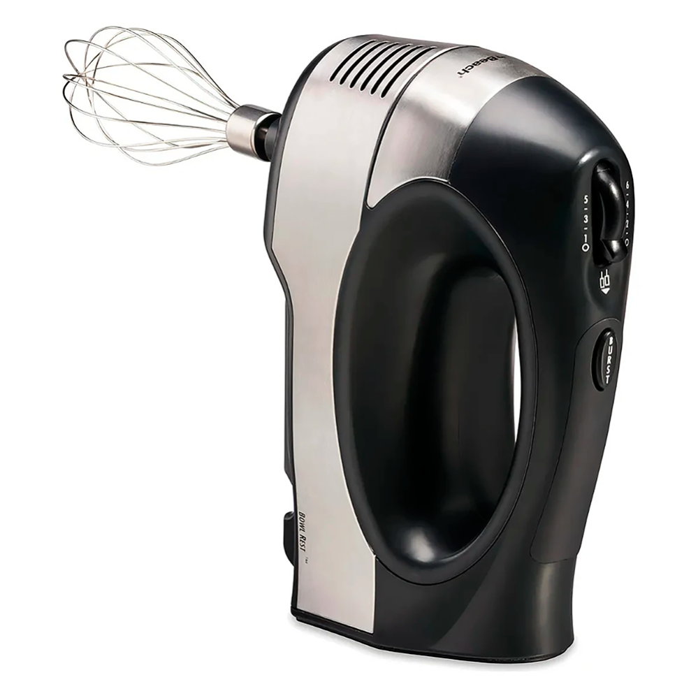 - Cuenta con resistentes batidores metálicos de acero inoxidable, diseñados para ofrecer mayor durabilidad y un mezclado uniforme, sin dañar tus recipientes ni utensilios de cocina.