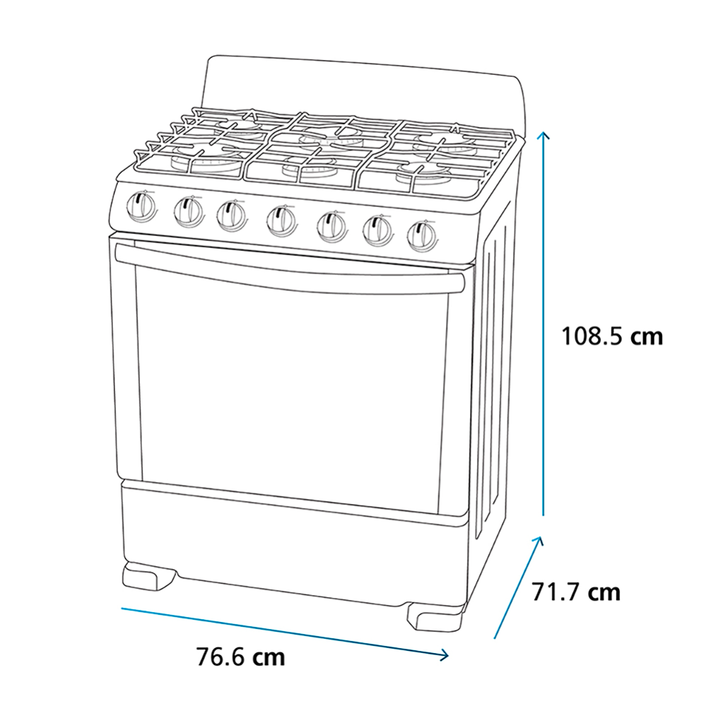 - Cuenta con una cubierta de 76 cm con 6 quemadores estándar, perfecta para cocinar varios platillos al mismo tiempo con un desempeño uniforme y eficiente en cada uso.