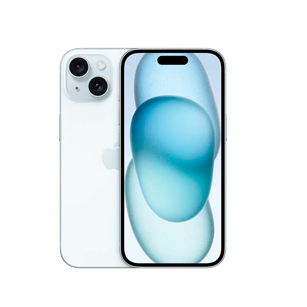 El iPhone 15, en color azul, tiene pantalla super retina XDR de 6.1 pulgadas, te proporciona colores vibrantes y nítidos, ideal para visualizar tus fotos y videos en alta definición.