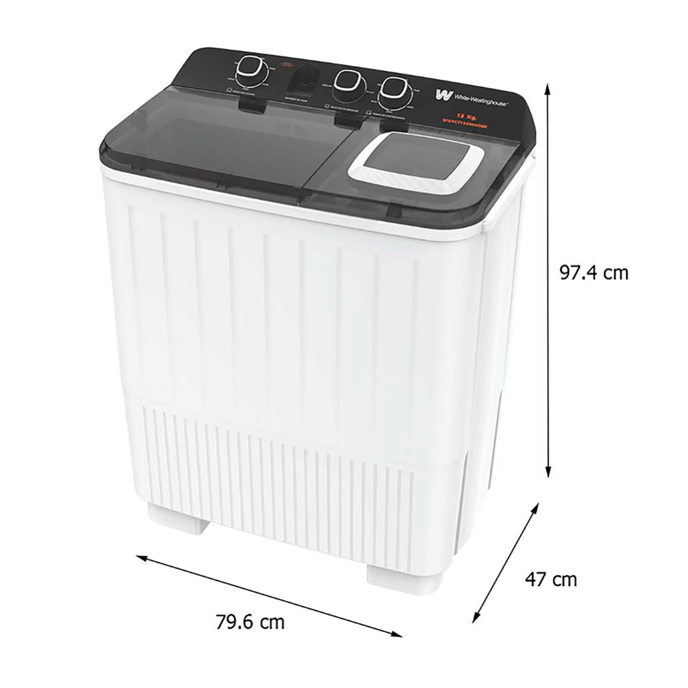 - La lavadora semiautomática White-Westinghouse de 13 kg está diseñada para hacer tu lavado más práctico, ideal si buscas eficiencia sin complicaciones en el día a día.