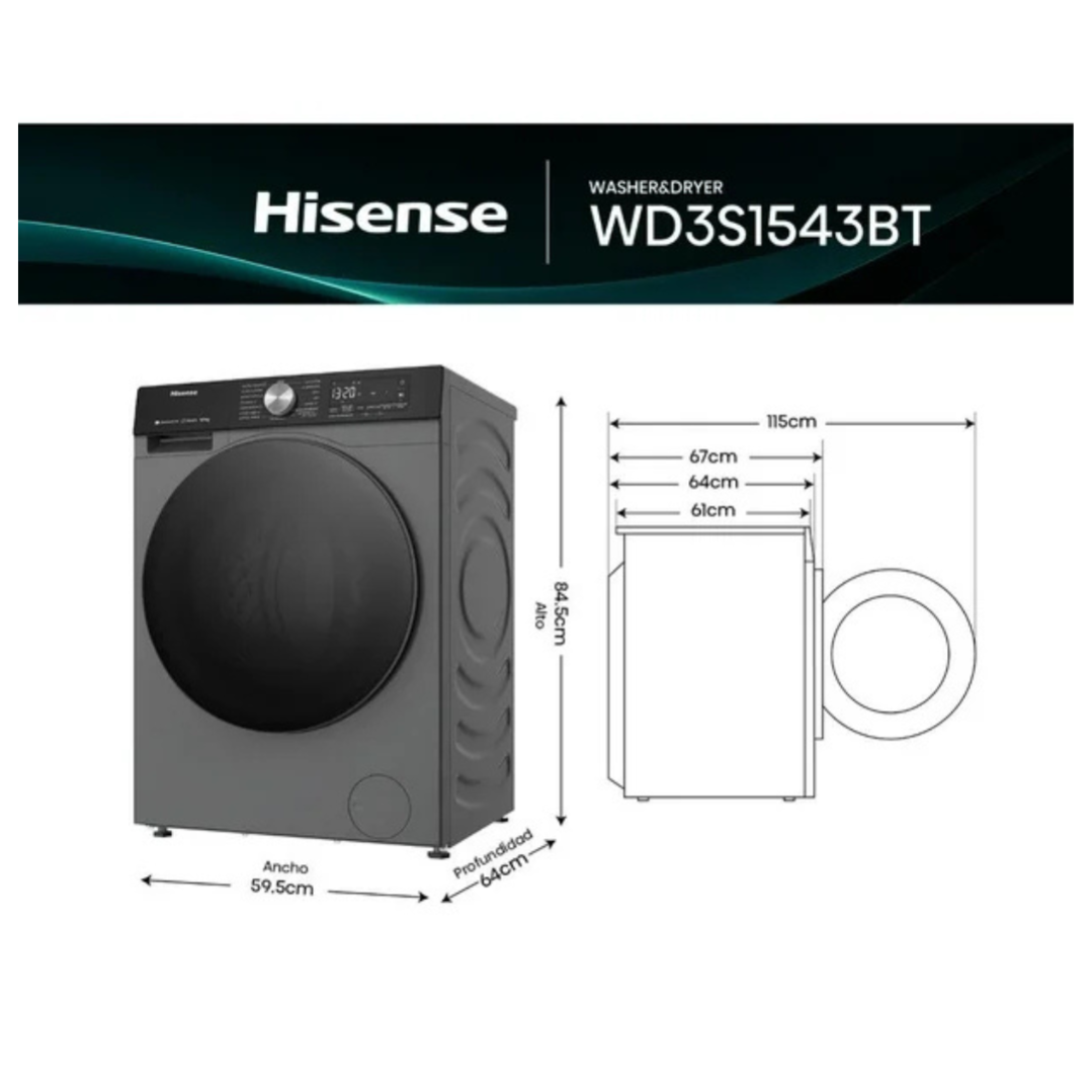 Descubre un cambio radical en tu rutina de lavado con la lavasecadora Hisense WD3S1543BT: una sola máquina que lava y seca, con capacidad para grandes cargas, alto rendimiento y un acabado que combina estilo y funcionalidad.
