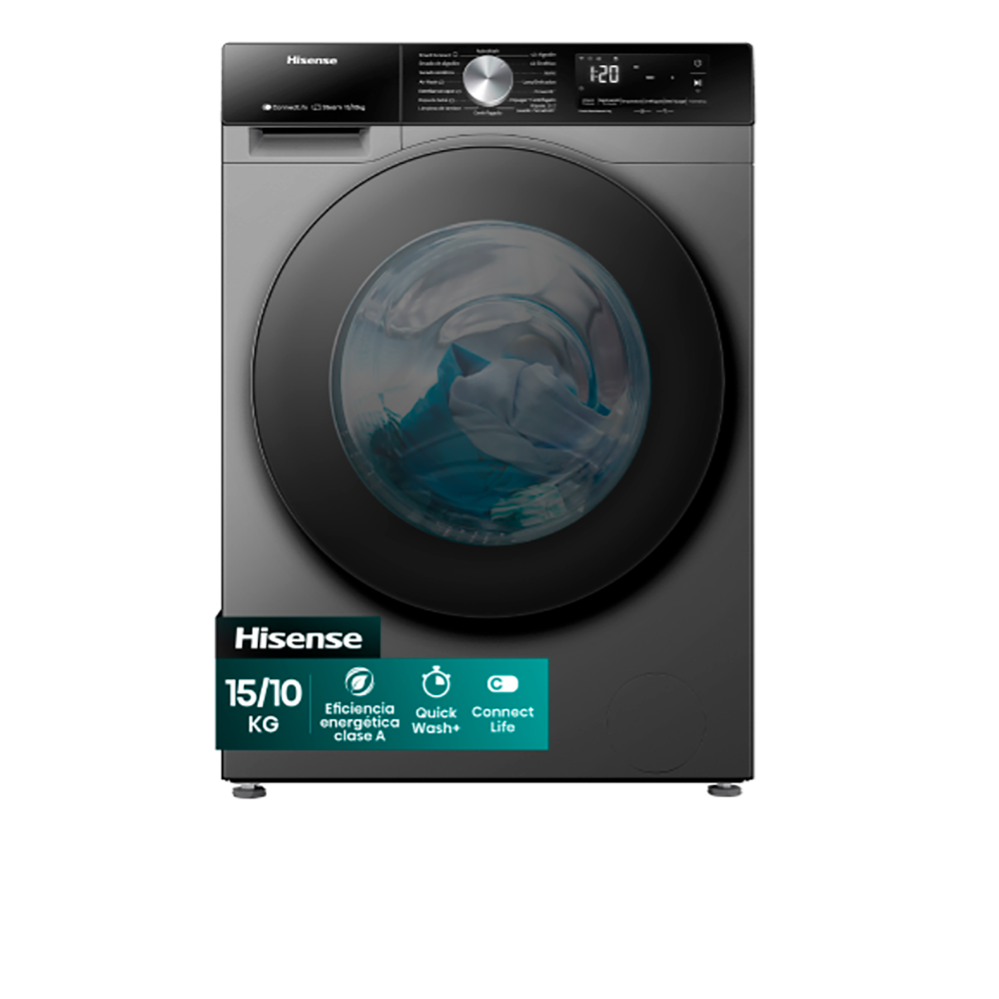 - ¿Quieres olvidarte de tender ropa y ahorrar tiempo en tu rutina? La Hisense WD3S1543BT une dos tareas en un solo equipo: lava y seca de manera eficiente, silenciosa y con el respaldo de la tecnología Inverter.